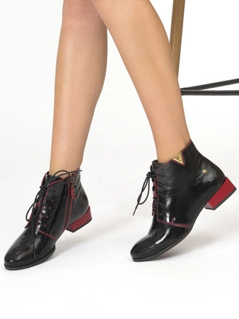 Maciejka Patent Leather Lace-Up Ankle Boots Side Zip Burgundy N3131-23/00-8
