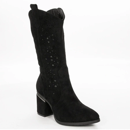 S.Barski Women's Spring Openwork Heeled Black Boots