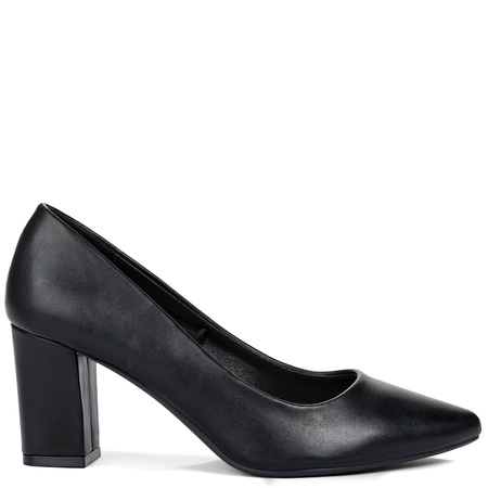 Sergio Leone Classic Block-Heel Pumps Almond Toe Black PB414 CZARNY PU