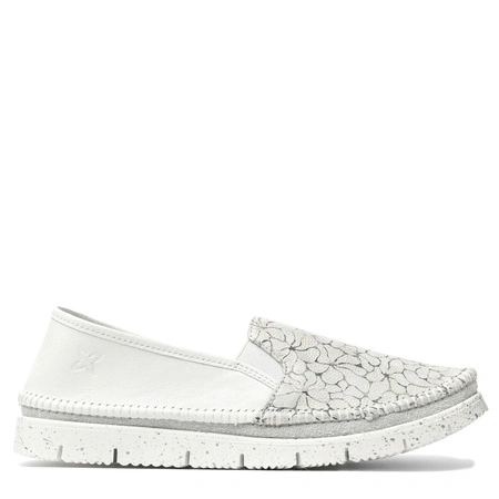 Maciejka Leather Slip-On Loafers Textured Toe White Silver 03512-70/00-0