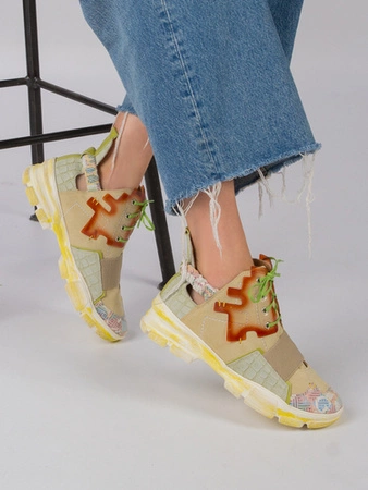 Maciejka Women's Leather Sneakers Grey+Yellow