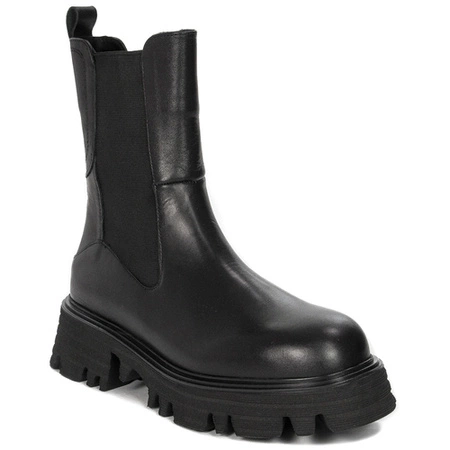 CAFENOIR Women's leather ankle boots Nero black