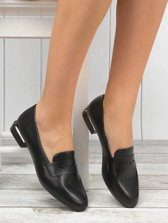 Sergio Leone Women's loafers with a chain Black PU Moccasins