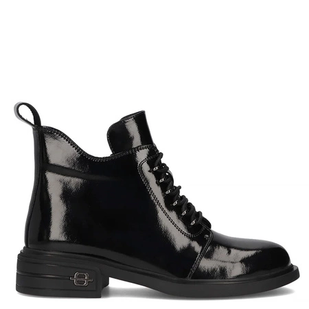 Filippo Patent Leather Lace-Up Women's Ankle Boots Flat Heel Black DBT631825BK