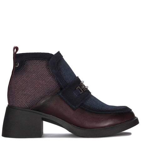 Maciejka Leather Two-Tone Block-Heel Ankle Boots With Side Zip Burgundy-Navy A6747-23/00-8