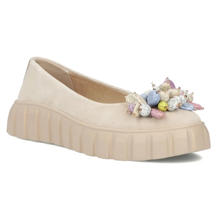 Maciejka Women's Leather Half Shoes Beige + Flowers