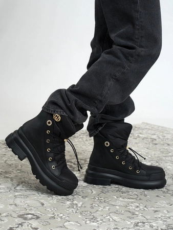 Filippo DBT6408 Women's black leather worker boots with decoration