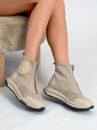 Maciejka Leather-Fabric Ankle Boots Front-Zip Light Beige 06297-22/00-8