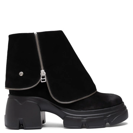 Maciejka Suede Asymmetric Zip Ankle Boots Platform Black 07145-01/00-8