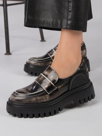 Maciejka 6294A-08/00-8 Black and white flat shoes