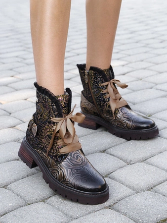 Maciejka Botki ze Skóry Welurowej na Masywnej Podeszwie Brązowe 06309-02-00-8