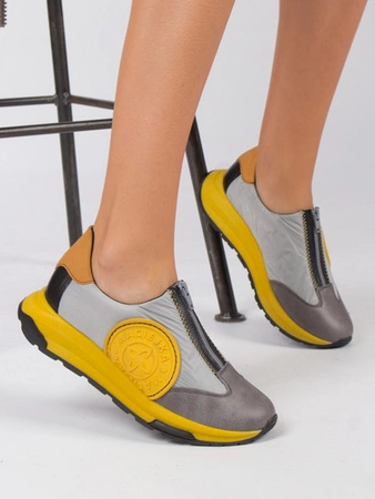 Maciejka Women's Leather Sneakers Grey+Yellow