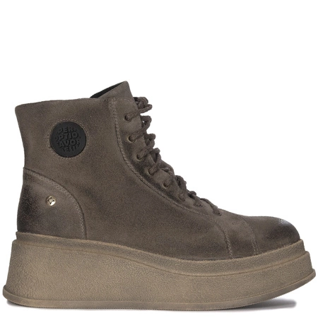 Maciejka Botki ze Skóry Welurowej na Masywnej Podeszwie Brązowe 06309-02-00-8