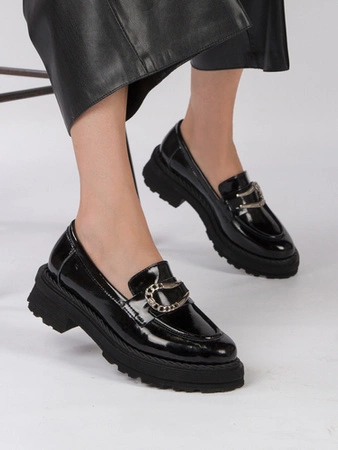 Maciejka Pumps Leather Block-Heel Loafers Patent Black 06285-01/00-7