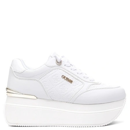 Guess Platform Quilted Monogram Sneakers Metallic Heel White FLPC10FAL12 WHITE