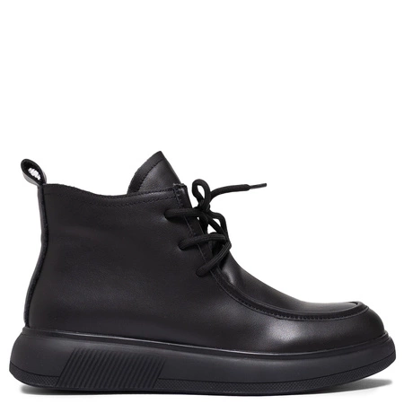 Sokolski Leather Platform Ankle Boots Side-Zip Black HW-Z25-25-BLK