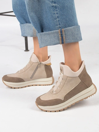 Rieker High-Top Platform Sneakers Side-Zip Beige W3871-60-BEIGE