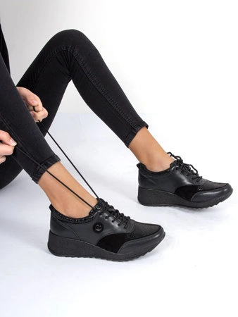 Sokolski Leather Platform Ankle Boots Side-Zip Black HW-Z25-25-BLK