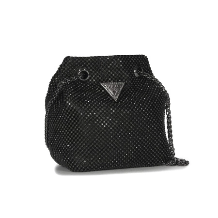 RM920575Introducing a beautiful evening handbag from the excellent brand GUESS. Single-compartment, fastened with a magnetic clasp, made of high-quality plastic and fabric in black. The front of the bag is decorated with a silver Guess brand logo. The interior of the bag is trimmed with a beautiful satin black fabric. Inside, one small zippered pocket. The model is equipped with a metal chain also in black color. Dimensions of the bag: height 15 cm, width 15 cm, depth 10 cm. Ideal for a date, cinema, party or wedding. Despite its relatively small size, it will easily accommodate everything you need and at the same time will add character to your styling for a special occasion. The product is 100% new and original.