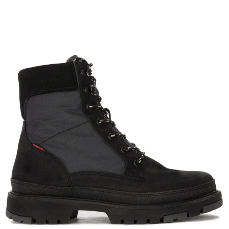 233637-666-559 Full BlackPrzedstawiamy państwu mocne stabilne Botki męskie. Prezentowany model to najnowsza propozycja marki Levi"s. Obuwie zostało uszyte z naturalnej skóry oraz wysokogatunkowego tworzywa w kolorze czarnym. Okrągły kształt noska pozwala na wygodne ułożenie palców i daje im dużą swobodę. Ten model butów dzięki solidnemu sznurowaniu będzie pewnie przylegać do Twoich stóp na całej długości. Wnętrze zostało wykonane z materiału tekstylnego oraz wełny, wkłądka zapewnijąca doskonały komfort wykonana jest z tkaniny. Gustowne, czerwone logo marki z boku buta stanowi subtelną ozdobę modelu. Niewątpliwą zaletą w tym modelu jest stabilna antypoślizgowa stabilna podeszwa w o wysokości 4 cm. Komfortowe, bardzo wygodne ciepłe i praktyczne buty trekkingowe.Idealne na długie zimowe spacery i wycieczki jak również sprawdzą sie w ekstramalnych warunkach.