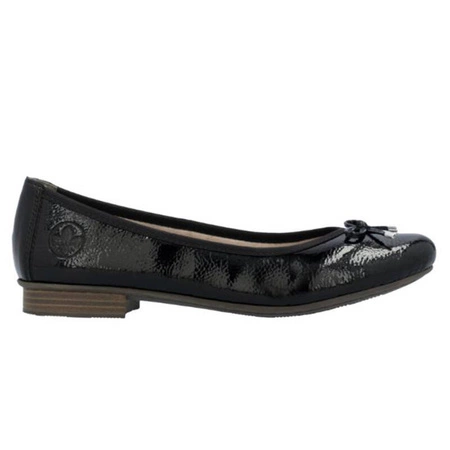 51950-00Women's ballerinas by Rieker are very elegant and classic. An ideal choice for women who appreciate style, comfort and high quality. The upper layer of the shoes is made of ecological patent leather in black. The insole of the shoes is made of soft natural leather, which ensures maximum wearing comfort. The interior of the shoes is made of fabric. The sole is made of high-quality flexible plastic. The ballerinas have a 2 cm high heel. This is an ideal choice for the spring-summer season to wear on warm days or to work. They will go perfectly with spring and summer outfits.