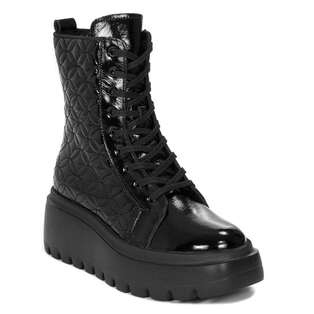 The Venezia brand is an ideal alternative for fashion connoisseurs who like interesting solutions. Original models, many colors and great comfort - these are the perfect words for this brand's products. The presented boots for the fall-winter season are another of the many timeless offers of this manufacturer. The upper is made of patent leather in black. The sole is 5 cm high at the front and 7 cm high at the back, perfectly isolating the feet from the ground. The interior and the insole are made of fleece nice to the touch. A classic, simple cut of footwear looks original, and is also very functional. Perfect for work, university, but also for business and social meetings.