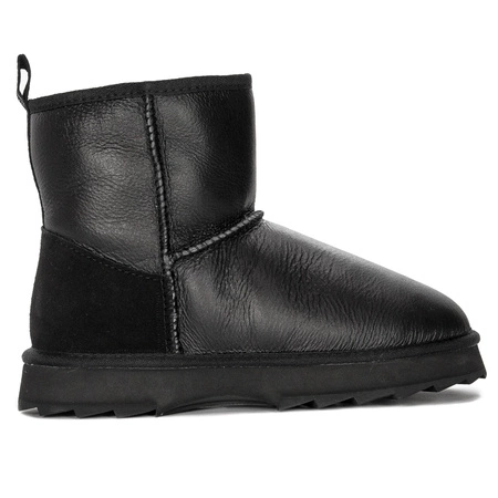 W12637 BlackWomen's snow boots by the excellent and world-famous brand EMU Australia. A carefully made upper made of natural sheepskin grain leather and velor (on the heel) in black color pleasantly fits the leg. Padded with merino wool interior and insole, softly hugs the foot and insulates it from the cold. Slip-on model with a round toe, on a 3 cm high platform. The EVA foam provides flexibility and lightness.