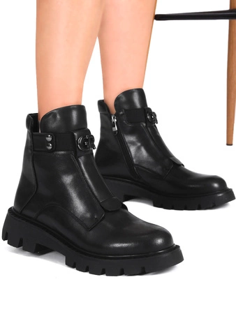 DBT6593/24 BKA new model of heeled boots from the esteemed Filippo brand, designed for the autumn and winter season. The upper is made of high-quality natural leather in a classic black shade. The round nose provides comfort for the fingers, and the side zipper makes it easy to put on and take off quickly. The interior made of soft, slightly insulated fabric gently wraps the feet, providing warmth and comfort. The model has a 4 cm high heel and a 2 cm thick sole at the front, which makes it ideal for both dresses, skirts and trousers. Quality: I. Tensity: G.