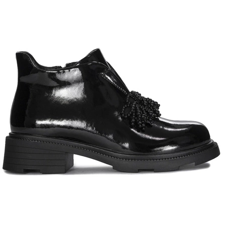 DBT6370/24 BKInsulated women's boots from the brand Filippo. The upper was made of patent leather in Black - Black color. The round toe gives the toes a lot of freedom and allows for their comfortable positioning. A zipper on the inside will make it easier to change shoes. The interior and insole are made of warm, soft fleece, which wraps and warms the feet and gives a feeling of comfort. The flexible sole has a 4 cm high heel. The model is ideal for both pants and dresses or skirts. Filippo is a brand whose collections are designed for classy women who care about always looking perfect regardless of the occasion. Tensity: G. Quality: I.
