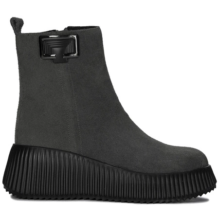 DBT6392/24 GRIntroducing the latest model of women's boots by Filippo. The upper was made of high-quality natural suede leather in “Grey” grey color. The round toe gives the toes a lot of freedom and allows for comfortable positioning. The interior and insole are made of soft and warm fleece. The model on a platform with a height of 7 cm at the heel and 3 cm at the front. Zipper closure makes it easy to change shoes. They will perfectly complement many original stylizations. Filippo is a brand whose collections are designed for classy women who care about always looking perfect, regardless of the occasion. Tensity specified by the manufacturer: G. Quality: I.