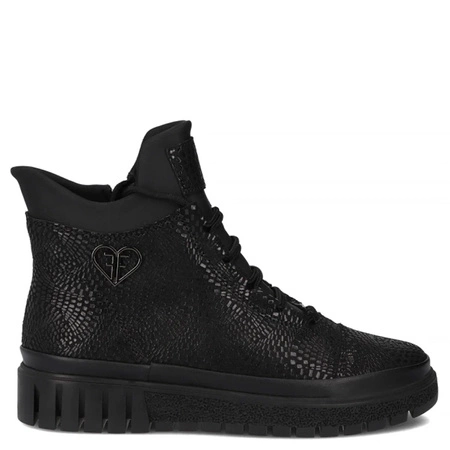 Looking for black ankle boots that feel as good as they look? Meet Filippo DBT7302-25-BK — crafted from genuine leather with a subtle, snake-embossed texture that instantly elevates everyday outfits. A chunky yet surprisingly light sole with deep grooves gives the silhouette a modern, city-ready edge while improving grip on wet or icy pavements. The softly padded ankle collar pampers your foot, and the brand’s heart emblem adds a discreet, feminine accent. Thanks to the smart double fastening — an inside zip for speed and classic front laces for precision — you get the best of both worlds: quick on/off and tailored fit. Inside, a cosy synthetic insulation wraps the foot to keep warmth in during the chilliest commutes and weekend strolls.
