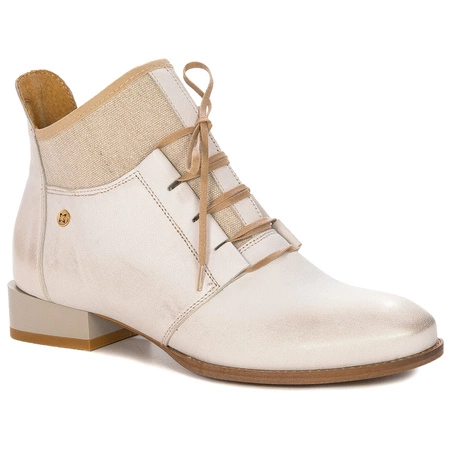 04744-22/00-5Maciejka is a Polish brand that produces women's footwear. The shoes of this brand are made of the highest quality natural leather, which is a guarantee of comfort, convenience and versatility. Models produced by the Maciejka brand follow the latest trends, also remaining in the classic design framework. The company's priority is customer satisfaction, and here is a model that meets all these criteria. The upper is made of natural grain leather with a delicate weave and elastic fabric in a light beige color. The sole is made of flexible, high-quality material with a stable, flat, square heel 3 cm high. The interior is a combination of fabric and natural leather, the insole is made of natural leather. Lacing on the front of the upper will allow you to perfectly fit the footwear to the foot. High comfort of use in combination with an effective appearance is a characteristic feature of these shoes. So if you value comfort and originality, this pattern is for you.