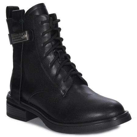 N3113-01/00-8The Maciejka flat ankle boots combine lightness, comfort, and style. Made from high-quality genuine leather in a classic black color, these boots provide both durability and a stylish appearance. The polar fleece interior and soft fabric insole ensure warmth and comfort throughout the day. Laces allow for a perfect fit, and the side zipper makes it easy to put on and take off the boots. Featuring a rounded, slightly almond-shaped toe and a 4 cm heel, these boots offer both stability and comfort. They are perfect for pants or casual outfits, regardless of color. Quality I.