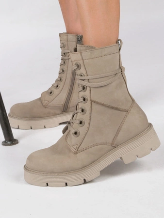 25286-41 349Marco Tozzi is a very well-known footwear brand, whose products are distinguished by the highest quality of workmanship and effective, modern design. The new offer of this brand for the autumn-winter season is beautiful, original, women's boots. The soft upper made of natural nubuck leather in beige "taupe" and has a height of 17.5 cm perfectly protects against adverse weather conditions. The zipper on the inside makes changing shoes quick and easy. A thick 2.5 cm thick sole at the front with a stable 4 cm heel perfectly insulates feet from the cold, wet ground, ensuring great comfort. The interior and the insole are insulated with fleece, thanks to which the feet will not get cold on winter and autumn days.