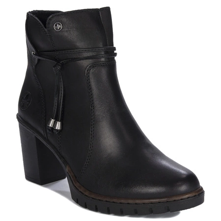 Y2567-00The new Rieker brand proposal is extremely comfortable and stylish women's insulated boots. Made of high quality material in black, they have a zipper on the inside of the upper, which makes it easier to put on shoes. The interior and insole are padded with soft insulation, which effectively protects feet from cold in the autumn and winter season. Boots have an 8-centimeter heel in the shape of a post. They are very fashionable and extremely comfortable, they perfectly match various stylizations.