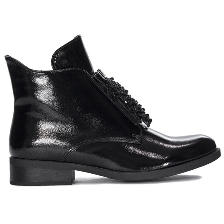 HY42-714We present elegant boots by S. Barski. The upper in classic black color is made of high-quality eco-leather. The 3 cm high flat heel subtly raises the silhouette while providing stability. The round nose provides comfort to the fingers, and the zipper on the inside makes it easy to put on quickly. The insulated interior and insole make these boots ideal for cool autumn and winter evenings. Light and neat, they are an absolute hit this season and fit many outfits. Stensity: G, quality: I.
