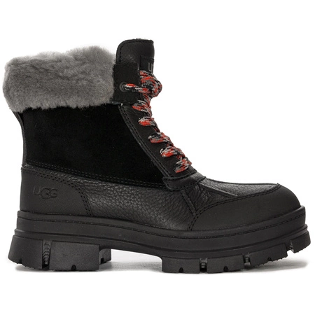 1130524 BLKFashionable and comfortable! This is exactly what women's boots from the new UGG Australia collection offer you. The carefully made upper made of natural leather and ecological leather in black is pleasantly arranged on the leg. The interior is insulated with sheep wool, and the insole is made of high-quality material. Flexibility and lightness is provided by EVA foam. The durable sole has a height of 3 cm in the front and 5 cm in the heel, which guarantees very good grip and cushioning. Water Proof technology ensures water resistance. Boots have classic laces. Very light, comfortable and warm on cold winter days.