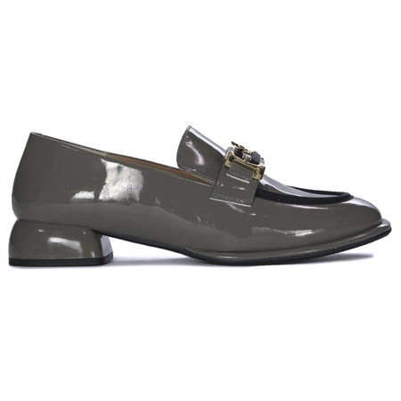 55C0412Women's semi-heeled shoes from the Artiker brand. They were made of top quality patent leather in an elegant “Grey” gray color. The interior and insole are made of natural leather. The sole of the shoe is made of high-quality plastic, which provides not only comfort and durability, but also cushioning when walking. The height of the heel is 3 cm. Half-shoes slip-on, which allows easy and convenient putting on and taking off. On the front there is an original, decorative application with a butterfly.