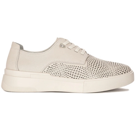 DP4405/24 BEWelcome to our shop, where we offer unique and stylish Filippo women's shoes! These beige shoes with an openwork pattern are the perfect choice for women who appreciate elegant style and comfort. The top of the shoe is made of the highest quality natural leather, which guarantees durability and stylish appearance of the shoe. The openwork pattern adds a unique character and originality to the shoes. The interior of the shoe has been finished with a soft fabric, and the insole made of comfortable natural leather ensures comfort. The sole of the shoe is made of high-quality material, which guarantees durability and stability. The platform with a height of 4 cm in the heel and 2.5 cm in the front of the shoe is the perfect solution for women who want to lengthen their figure and at the same time feel comfortable in their footwear. The shoes have elastic lacing, which allows you to adjust the fit to individual needs. These Filippo women's shoes are a combination of style, comfort and durability. They are perfect for many different occasions, from everyday walks around the town, to meetings with friends and evening outings. They will also be a great gift for every woman who appreciates comfort and original style.