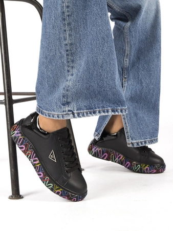 DP4480/23 BK MLTWomen's shoes are a type of footwear that will never go out of fashion. The presented model is the latest offer of sports shoes - sneakers from the well-known Polish brand Filippo. The top is made of natural leather in black. The tip of the shoe has a round shape so it gives the toes a lot of freedom. The insole is made of natural leather, and the interior is ecological leather. The sole is a black platform with a colorful pattern, 4 cm high at the heel and 3 cm high at the front. Quality: I. Standard shoe width - G.