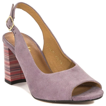 Good quality universal pumps by Maciejka is a solid and proven product. What makes this model so special? Definitely unique design, lightweight, durable and very user-friendly materials. This model is made entirely of natural velor leather. Discovered fingers and heels give extraordinary freedom to our feet and allow you to maintain the optimal temperature even on hot days. On the ankle, a belt with a buckle and adjustable. The interior is a soft leather insole and lining, which guarantee great comfort of use. Attention in this model is attracted by a beautiful heel in horizontal purple-red beige stripes. Lightweight, well-profiled sole with 8 cm heel provides a stable support for the whole body. Perfect shoes for work, shopping and social gatherings. A fantastic addition to many spring and summer stylizations.