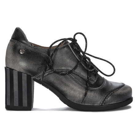 06574-11/00-5Original and comfortable women's shoes from the Polish brand Maciejka are an excellent choice for ladies who appreciate a female style with a hint of extravagance. The upper is made of natural leather that goes from black to white. The inside of the shoe and the insole are also finished with natural leather. The shoes have a heel of a 9 cm high and are tied to classic laces. They go perfectly with both pants and dresses, which makes them an ideal choice for lovers of classics and elegance. Quality: I. Polish product.