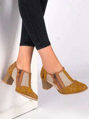 5793A-29-00-5Original and comfortable women's shoes by the Polish brand Maciejka are the perfect proposition for lovers of feminine style with a bit of extravagance. The upper is made of a combination of natural leather: velor and red fabric with a colorful pattern. The inside of the shoe and the insole are also made of natural leather. Model with a round, slightly almond toe and a 6 cm heel. Zippers on both sides of the upper make it easy to put on and take off the shoes. They will be perfect for both trousers and dresses for women who value a classic, balanced style. Quality: I. Made in Poland.