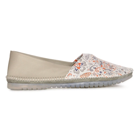 Maciejka Women's Leather Half Shoes Beige + Flowers