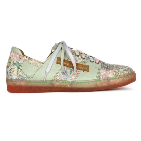 06791-09/00-1Maciejka green leather women’s shoes are a stylish and comfortable choice for the Spring/Summer 2025 season. Made from natural leather with breathable fabric details, they offer excellent airflow and day-long comfort. The lace-up closure ensures a perfect fit, while the lightweight sole provides soft cushioning for every step. The unique, colorful design adds a distinctive touch, making these shoes a great match for summer outfits. Ideal for women who appreciate a blend of fashion, comfort, and high-quality craftsmanship.