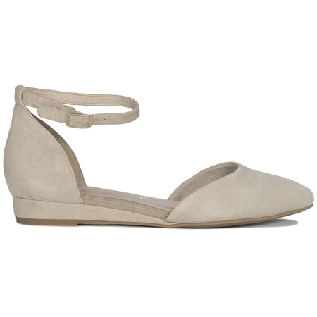 1-24241-42 400Presenting beautiful sandals with a built-in nose by German brand Tamaris. The upper is made of velour leather in beige color. The built-in, almond-shaped nose gives the foot a beautiful, slender shape. The strap has an adjustable buckle, which makes the shoes easy to put on/off and helps stabilize them on the feet. The interior is made of soft fabric, and the insole is high-grade plastic. The square, flat heel is stable, comfortable and slightly lifts the silhouette adding femininity. Very comfortable, lightweight and elegant. Super addition to many stylings.
