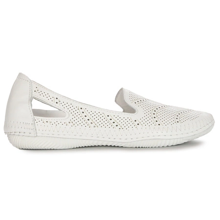 0055-640-1 WHITEWomen's slip-on shoes by Vacarro - ideal for women who appreciate unique style and maximum comfort. The shoes are made of top quality natural leather in a universal white color. The upper, interior and insole made of natural leather provide extraordinary durability and comfort of use. The sole of the shoe is made of high-quality plastic, which provides not only comfort and durability, but also cushioning when walking. The height of the heel is 2 cm, which increases the elegance and comfort of the shoes. These elegant half shoes by Vacarro are slip-on, which allows easy and convenient putting on and taking off the shoes. The model with a round, closed toe.