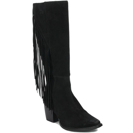 Maciejka is a company whose extremely fancy products delight not only with their original design, but also with the quality of raw materials, workmanship, rich design, a wide range of colors and comfort of use. We present another, timeless proposition of this brand for the fall-winter season, beautiful women's boots. The upper, decorated with fringes, is made of natural black velor leather. The upper on the inside has a comfortable zipper along the entire height of the upper, which makes it easier to put on / take off the shoes. The upper width / circumference is 38 cm (size 38). The insole and lining are soft and pleasant to the touch fabric that will provide your feet with comfort and convenience. The 6.5 cm high heel sole is made of high-quality plastic and perfectly insulates the feet from the ground, protecting them from cold and moisture. This model has an almond nose and lies beautifully on the leg, delicately slims it and gives a great look to the whole figure. If you have not decided on any model yet, this one is the right one. Order today and enjoy them for many seasons, adding freshness and interesting character to your stylizations. Quality: I. Made in Poland.