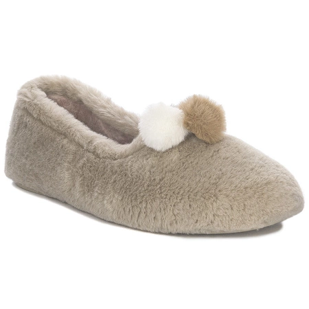ANAIS208 BEIGEBeauty, unique design and comfort - this is how the Spanish brand MACARENA can be presented in a nutshell. We present incredibly soft and very comfortable women's slippers from this renowned brand. Made of soft fur in beige color “Beige”, which gently wraps the feet giving a sense of incredible comfort and warmth. Round nose gives the toes a lot of freedom and allows for comfortable positioning. Comfortable, removable insole lined with soft foam allows women's feet to rest and relax. On the front a beautiful application with two pom-poms made of fur. Flexible, non-slip sole positively affects the safety of use. Ideal slippers for cold winter evenings spent in the comfort of a warm home fire. This is a cut for ladies who appreciate comfort and original design. Comes with a bag made from recycled materials. Country of production: Spain.