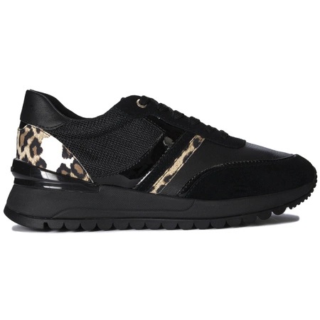 D3500A 02285 C0513We present the latest women's sneakers by Geox! They are made of a combination of natural Nappa leather, suede leather and black fabric with an additional accent in an antelope pattern. The inner part of the shoes is covered with fabric and soft synthetic material, ensuring maximum comfort and softness of your feet. The insert is a breathable fabric. The sole of the shoes, made of high-quality material with "RESPIRA" technology, provides proper ventilation of the feet, and at the same time protects against moisture. The shoes are laced, which allows a proper fit to the foot. These sneakers are the perfect choice for women who want to combine comfort and style. They can be worn every day or for more formal occasions, and their unique design will attract attention and impress everyone around. Don't wait any longer, add these cute sneakers to your collection today!